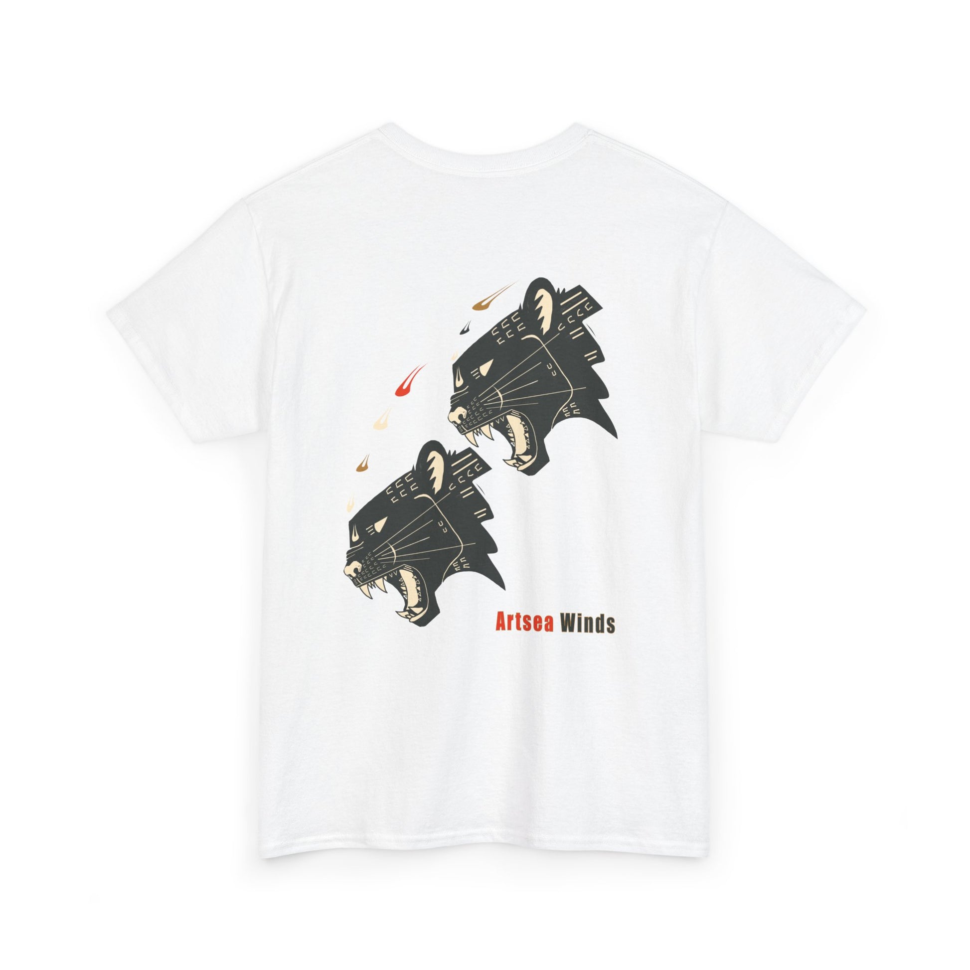 A soft, classic crew tee that carries quiet confidence. The clean white canvas puts a bold back graphic — twin stylized panther heads with subtle red accents — front and center while a small, offset logo near the heart adds a deliberate, understated touch. Lightweight but durable cotton feels broken-in from the first wear and holds up to repeated washes. Wear it to streetside meetups, late-night drives, or layered under a jacket for shows and open-mic nights. It’s made to move with you: relaxed fit, resilient collar, and no itchy tags.